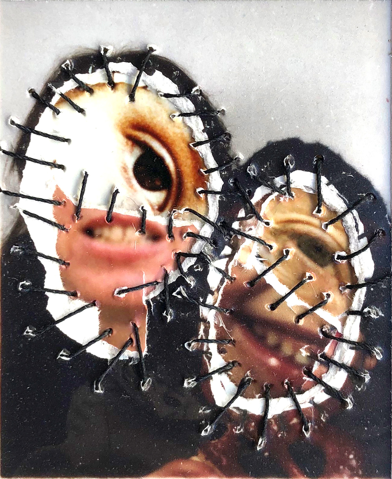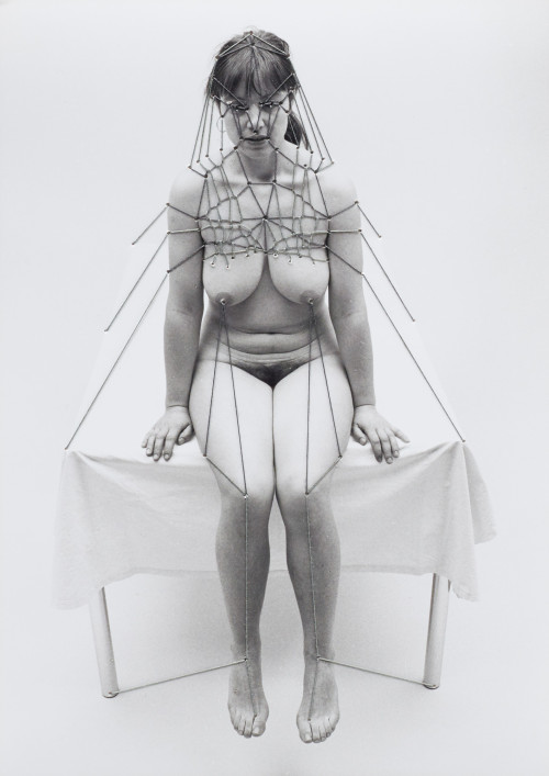 Afterwards she was part of the master class of Professor Anton Lehmden at the Akademie der Bildenden Künste Wien (Academy of the Arts in Vienna). She received numerous grants and awards and has been fellow of the Villa Massimo in Rome in 1984. Her works were exhibited at „WACK!: Art and the Feminist Revolution“ at the MOCA Los Angeles amongst others. Her work marks a fundamental reference point in the art of the 1970s and 1980s. Photomontages of her own body and face sewn over or collaged with black thread are the most well-known works of the German artist.
