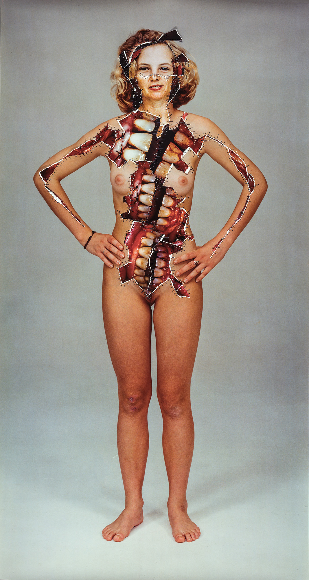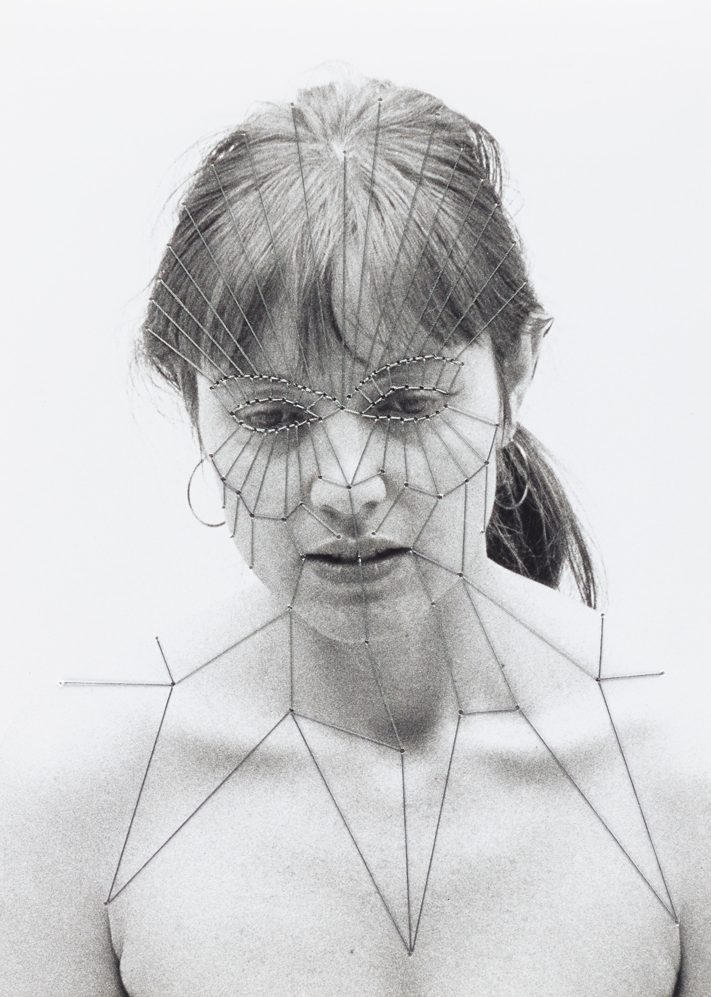 Afterwards she was part of the master class of Professor Anton Lehmden at the Akademie der Bildenden Künste Wien (Academy of the Arts in Vienna). She received numerous grants and awards and has been fellow of the Villa Massimo in Rome in 1984. Her works were exhibited at „WACK!: Art and the Feminist Revolution“ at the MOCA Los Angeles amongst others. Her work marks a fundamental reference point in the art of the 1970s and 1980s. Photomontages of her own body and face sewn over or collaged with black thread are the most well-known works of the German artist.