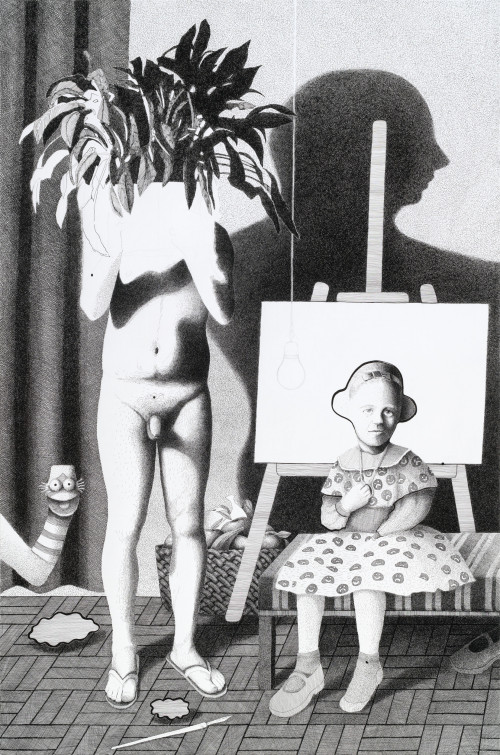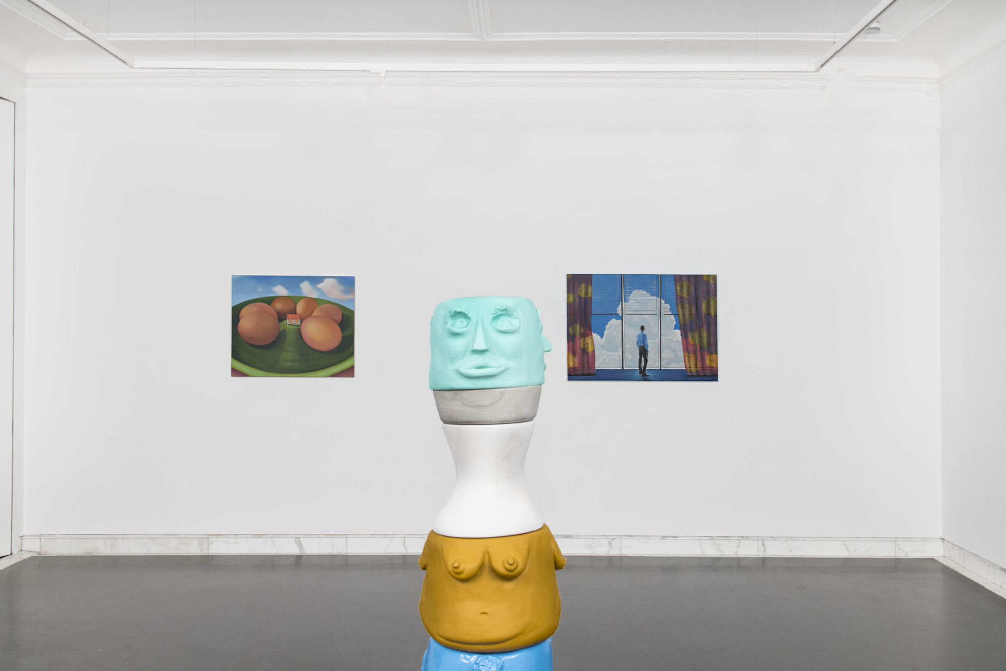 “Error Explanation” with works by Ivana de Vivanco, Sally Kindberg and Paris Giachoustidis. Experimenting with contemporary figurative painting in different ways, each artist provokes a discourse about the history of humanity and the absurdity of our times. Through “Error Explanation” the artists explore societal “errors” in an attempt to better understand and redirect our collective notion of the world today and of history. In doing so, they tackle issues of gender conformity, high and low brow culture, capitalism as well as colonial pasts.